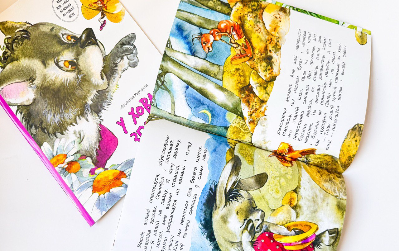 Наш заказчик обратился к нам в типографию за изготовлением именно таких изданий – серии сказок на белорусском и русском языках. Издания представляют собой тонкие брошюры с достаточно крупным шрифтом и небольшим объемом текста. Ведь именно в такой форме ребенок вероятнее всего заинтересуется книжкой, захочет ее рассмотреть, полистать, и даже сможет что-то прочесть самостоятельно. Также в этих брошюрах много изображений героев произведения: без этого невозможно представить себе детское издание. Вы можете узнать стоимость на странице печать брошюр.